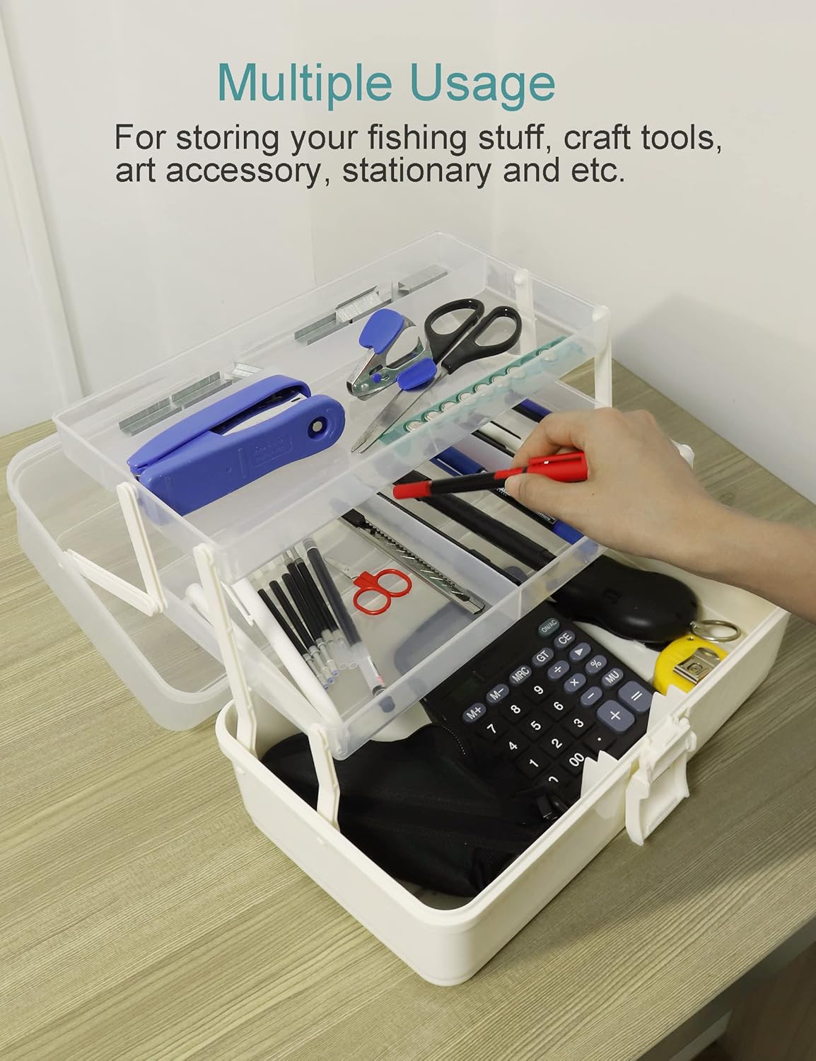 Avlcoaky Tackle Box Large 3 Layers Plastic Portable Storage Box Fishing White Tackle Box Organizer Art Craft Tool Box